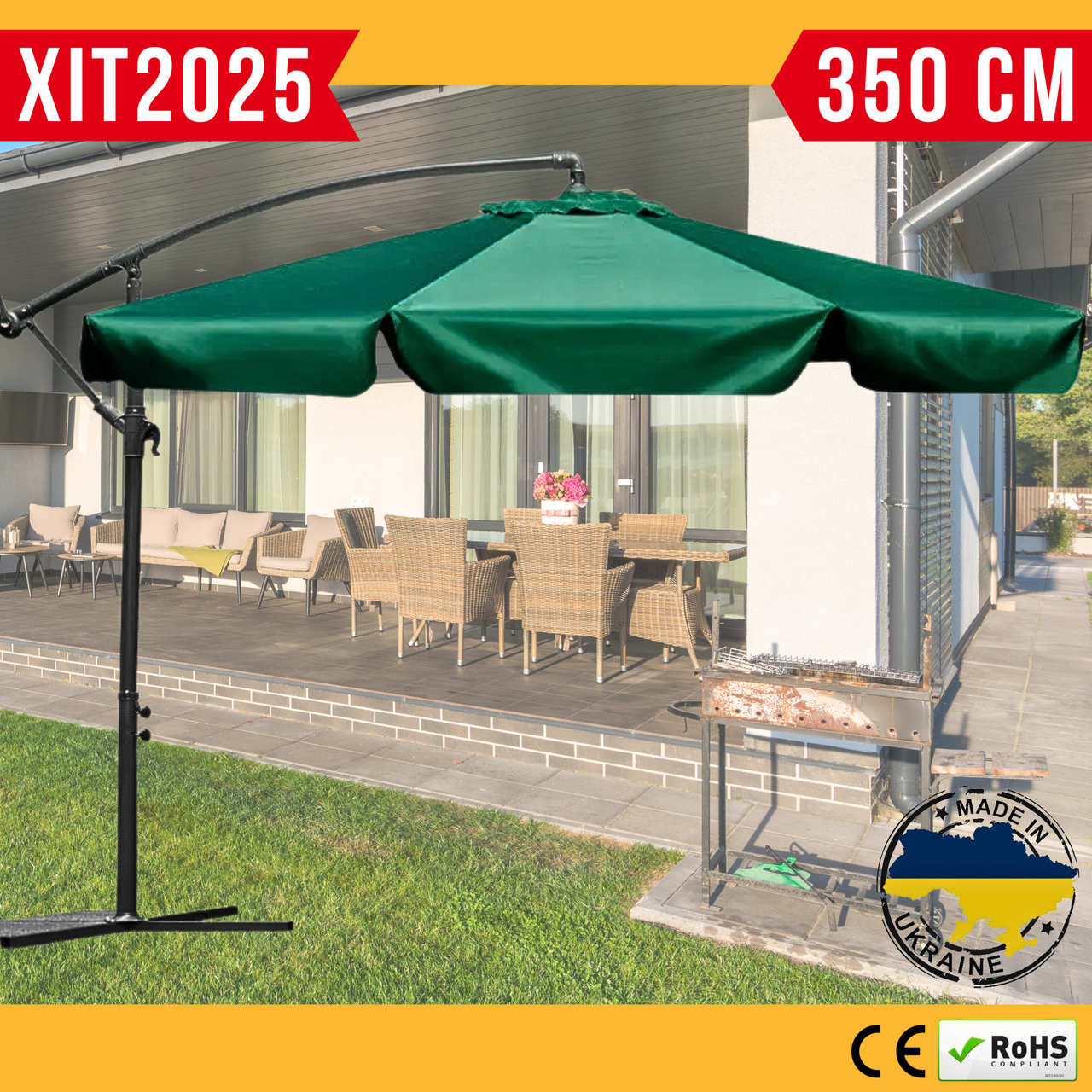 | Тип призначення | Великий Садовий Парасолька 350 см Зелена для дачі на Бічний стійці Розкладний Вуличний Парасолька 3,5 м з Нахилом Bonro Green |