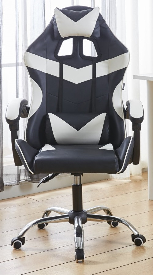 Геймерське Крісло Розкладне Bonro BN-810 Поворотне Комп'ютерне Ігрове Крісло до 120 кг Біле - Чорне