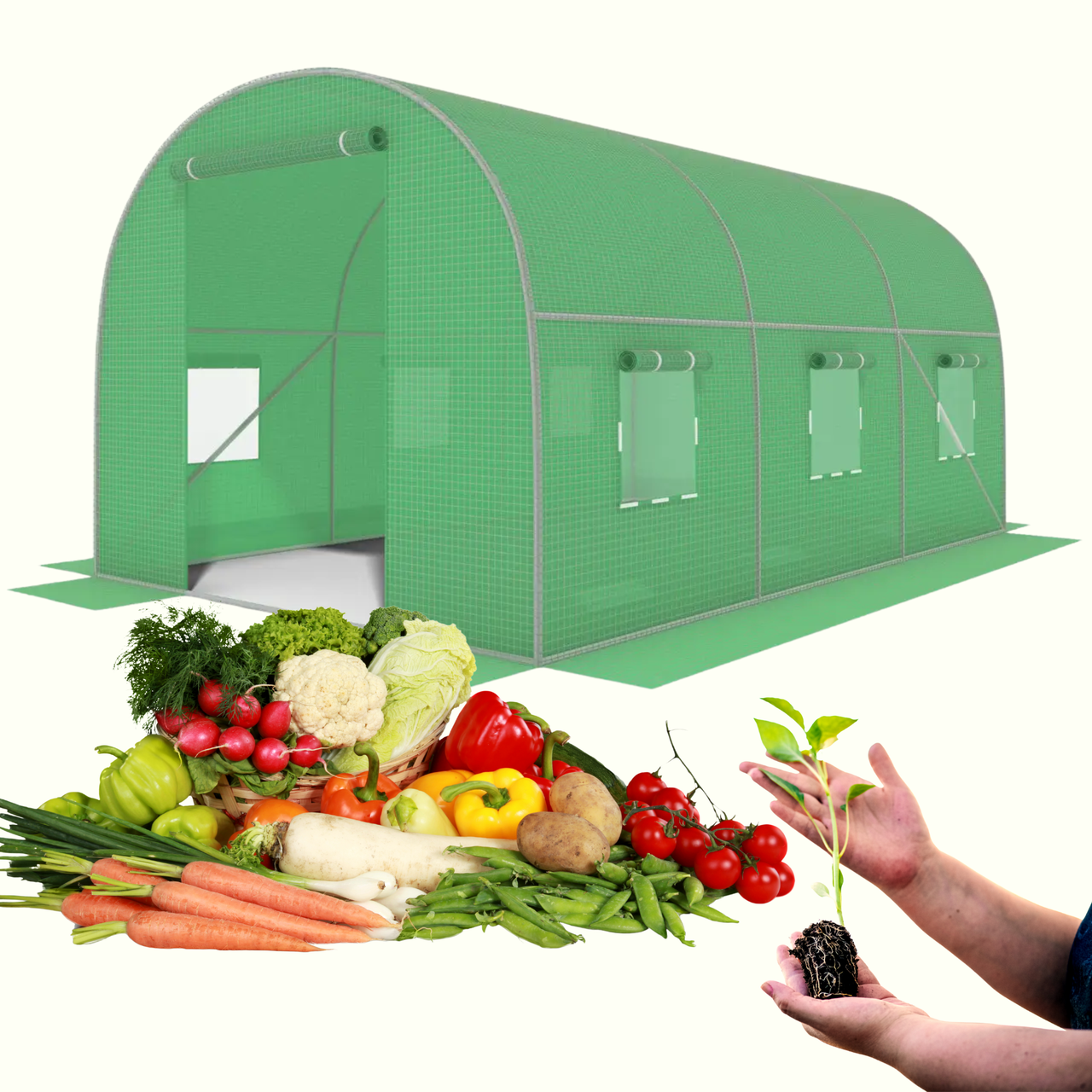 Шукаєте надійну та містку теплицю для вирощування овочів та зелені цілий рік? Ідеальний вибір – садова теплиця FunFit Garden Green Tunnel 10м², яка поєднує в собі міцність та функціональність.