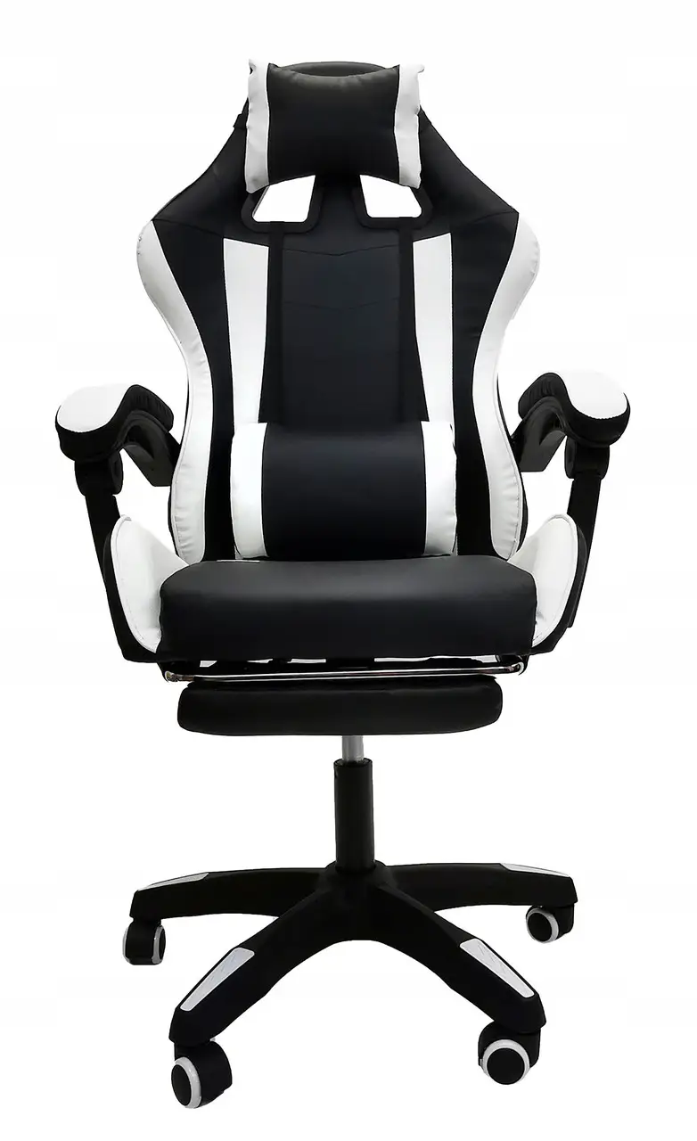 Геймерське Крісло з Підставкою для Ніг з Масажером Комп'ютерне Ігрове Крісло для Геймера Kontrast Viper Чорне з Білим до 120 кг