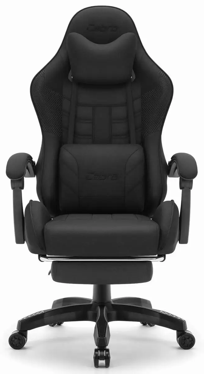 Геймерське Крісло з Підставкою для Ніг з Тканини до 150 кг Чорне Ігрове Крісло для Геймерів Cabro C501 Black Поворотне з Подушками